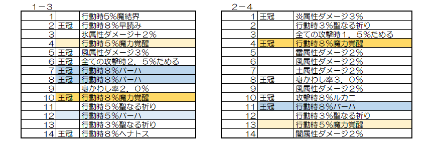 (同キャラで同じ効果の最大値がついたのが2つあった場合でも2とカウントしてます)