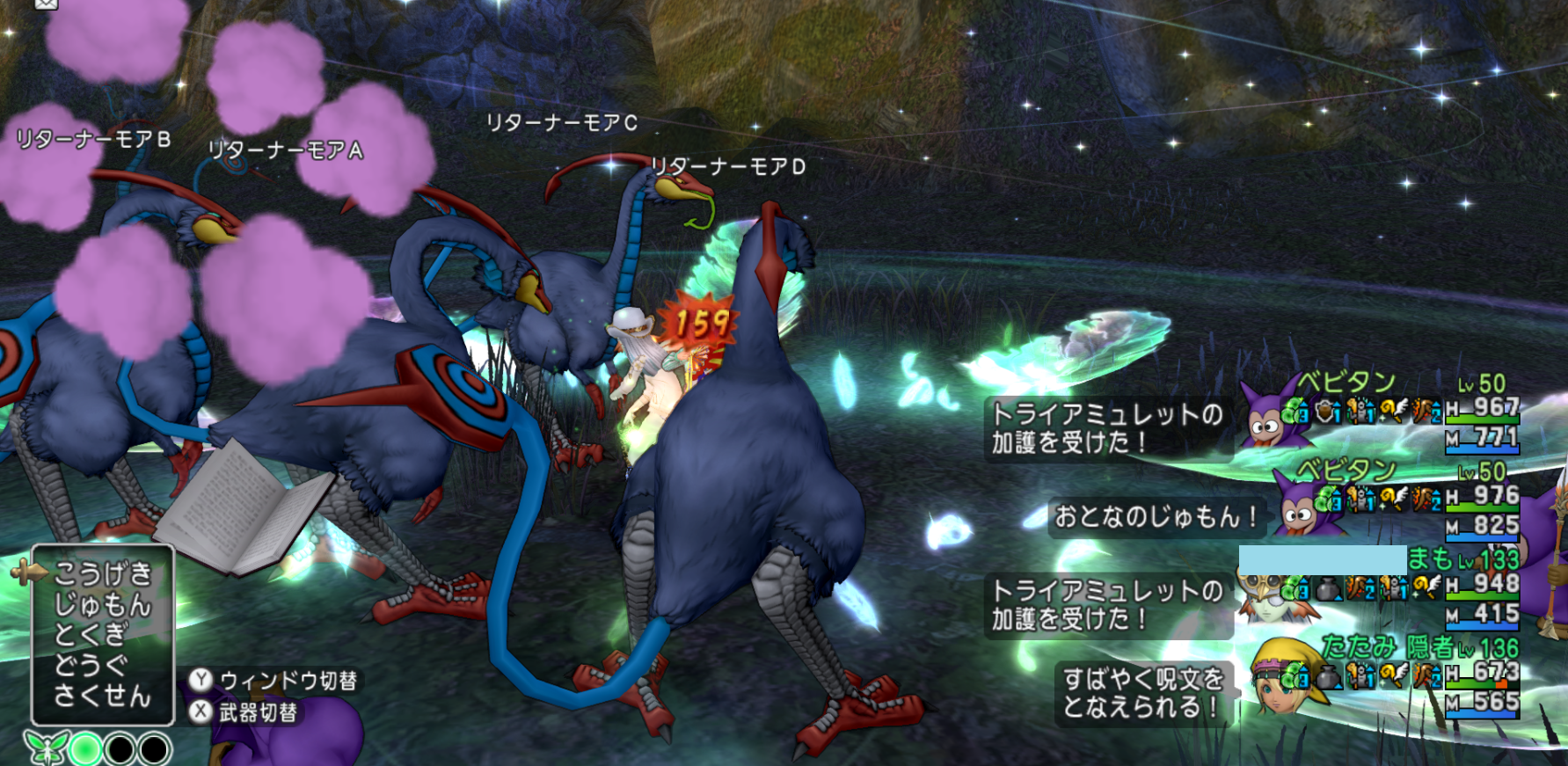 敵が3体の時は「エモノ呼び」で2体の時は「エモノ呼びの咆哮」で4体にします。