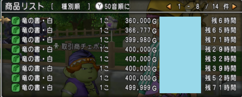 バザーを見てみると36万Gでした。思ったより安かったです。
