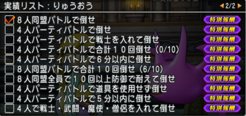 ついでにりゅうおうのラクリマも貰っておこうと思って実績を見てみたら