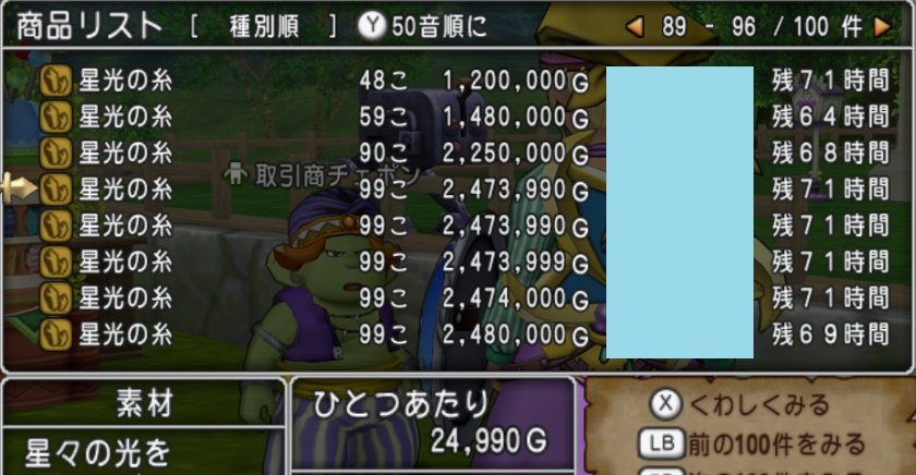 でもねぇ値段の変動が激しいからキラマラ行った後は即バザーに出したいのですよね。