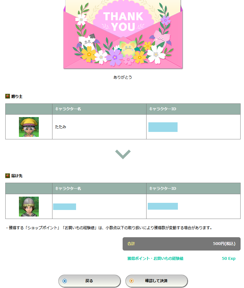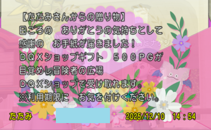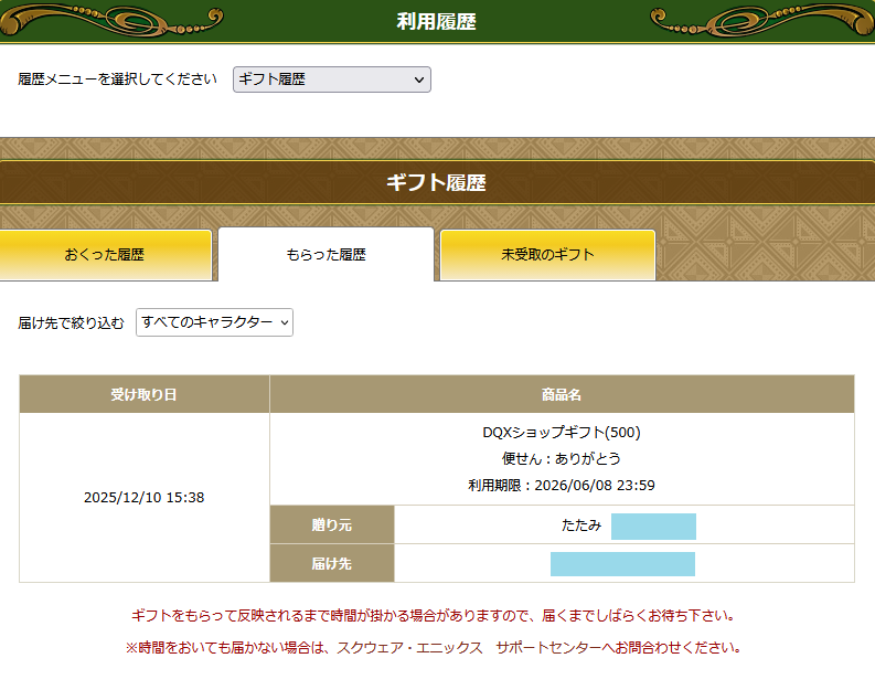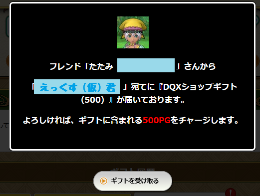 「DQXショップギフト」を贈ることができません。」もありますのでちょっと注意ですけど。