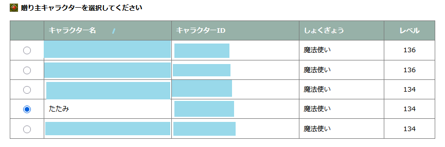 あれ?これ送り主の同アカウントから送るキャラを選べれるみたいですね。