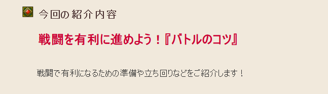 戦闘で有利になるための準備や立ち回りなどをご紹介します!って何かなー。