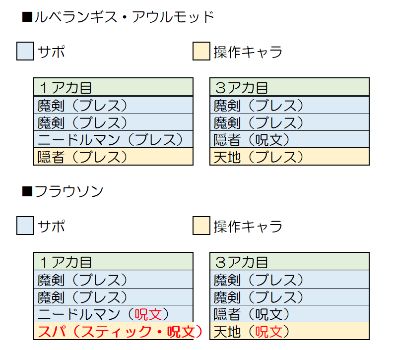 各キャラでやるときに同盟PTの組み合わせを変えると間違えたり手間取ったりするので