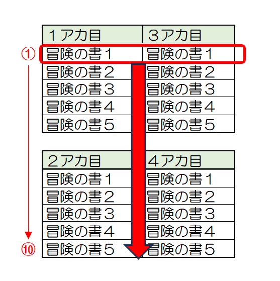 一応説明すると1アカ目の冒険の書1と3アカ目の冒険の書1がセットです。