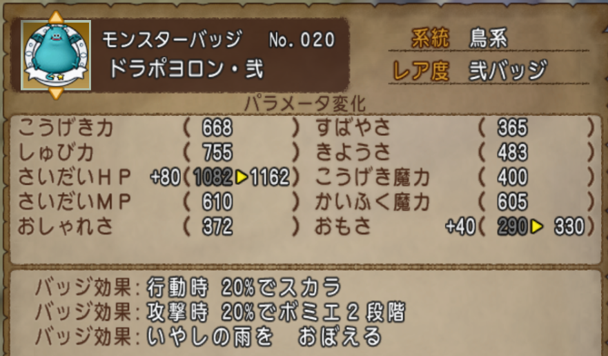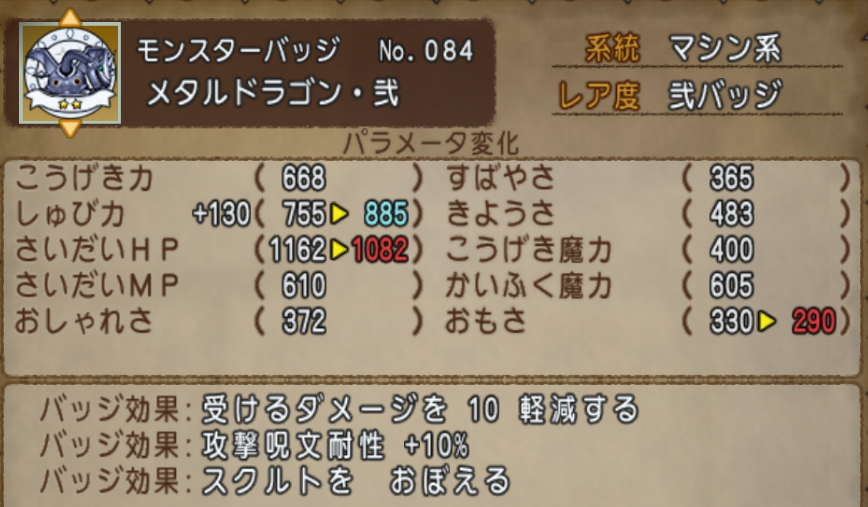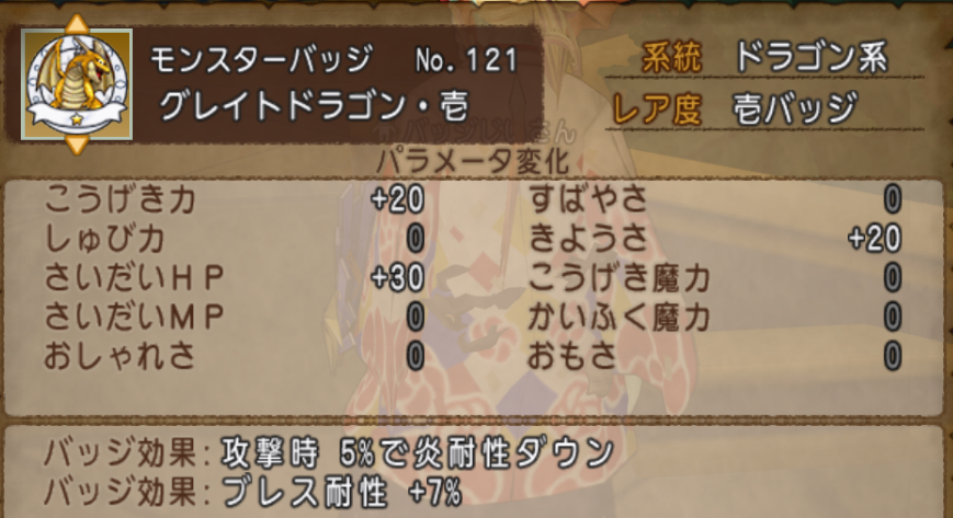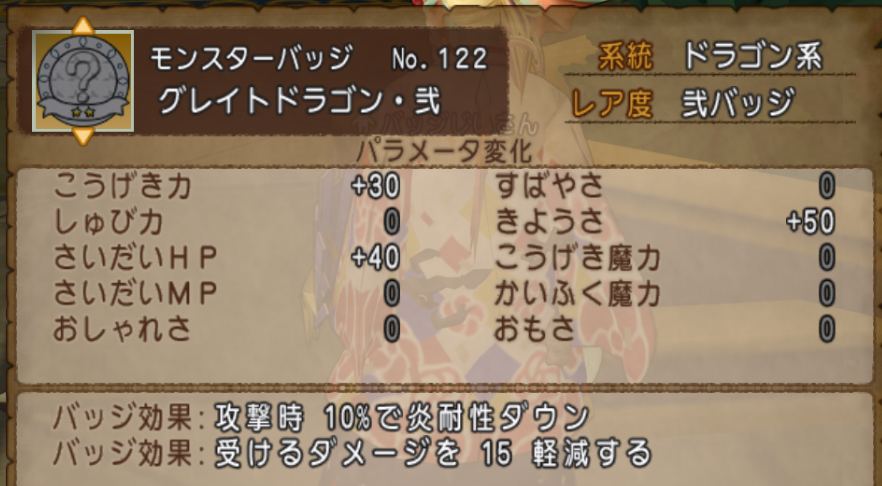 バッジを作成した時は怒号耐えの為にHP+80が魅力的だったので作りました。